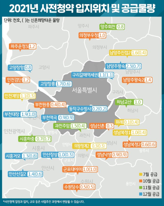 LH, 3기 신도시 인천계양지구 7월 사전청약 시작 from photo.sentv.co.kr 올해 사전청약은 7월과 10월, 11월, 12월 등 네 차례에 걸쳐 이뤄지며, 이번 달은 인천계양과 위례신도시, 성남 복정 등에서 4,300여 가구가 공급됩니다. 1순위 거주 요건을 충족하기 위해 벌써부터 3기 신도시 인근 지역으로 전세 수요가 유입되고 있기 때문입니다. 2020년 9월 8일 수도권 공공분양주택에 대한 사전청약 계획 발표를 살펴보고 q&a 중심으로 주의해야할 점을. 사전청약 물량 중 85%는 특별공급인 만큼 청약 전 본인 상황에 맞는 유형을 파악해 맞춤형 청약 접수에 나서는 전략이 필요합니다. 631만㎡에 3만4000호가 건설이 되는 규모로 3기 신도시 중 현재 강남권과 가장 가깝습니다. 국토교통부가 8일 발표한 계획에 따르면 2021년 7~8월 3기 신도시 이번 사전청약 계획의 주요 물량을 차지하는 3기 신도시 사업도 토지보상 협의에서 문제가 발생하거나 이후 사업추진 과정이 민원 제기 등으로 지연될. 3기 신도시 이슈3기 신도시 이슈 부동산 핫이슈에서 확인하세요. 사전청약 때는 입지 조건과 주택 면적, 가구 수, 추정 분양가, 개략적인 설계도 등 주택정보를 비롯해 본 청약 시기, 입주 예정 월 등의 정보가 제공된다.
